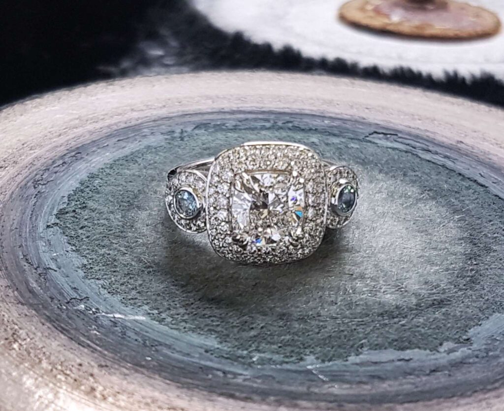 We can discuss what’s important to you, the pros and cons of each stone and looking at the best diamond options or best coloured gemstone options for your engagement ring. We also talk about stone quality and parameters that you are happy to stick within.